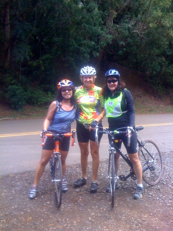 Linda Patricia Shirley bike Kolekole Pass 08012009 Linda, Patricia and Shirley at the top of Kolekole Pass.