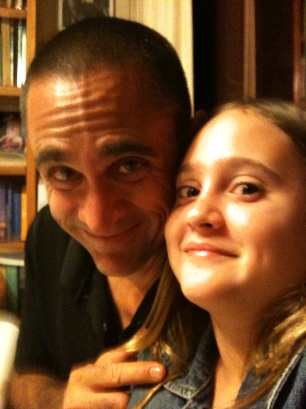 My father-in-law, family chef and cook in residence, put together a family favorite, paella: arborio rice, saffron, chicken, shrimp, sausage, tomatoes, peas, a treasure hunt in a giant pan. Everyone enjoys it. We bring over lemons and FIL Byron places slices on top. That and a salad, followed by chocolate cake with chocolate icing, will complete our meal. Oh, and bubbly. Bottles of bubbly!
