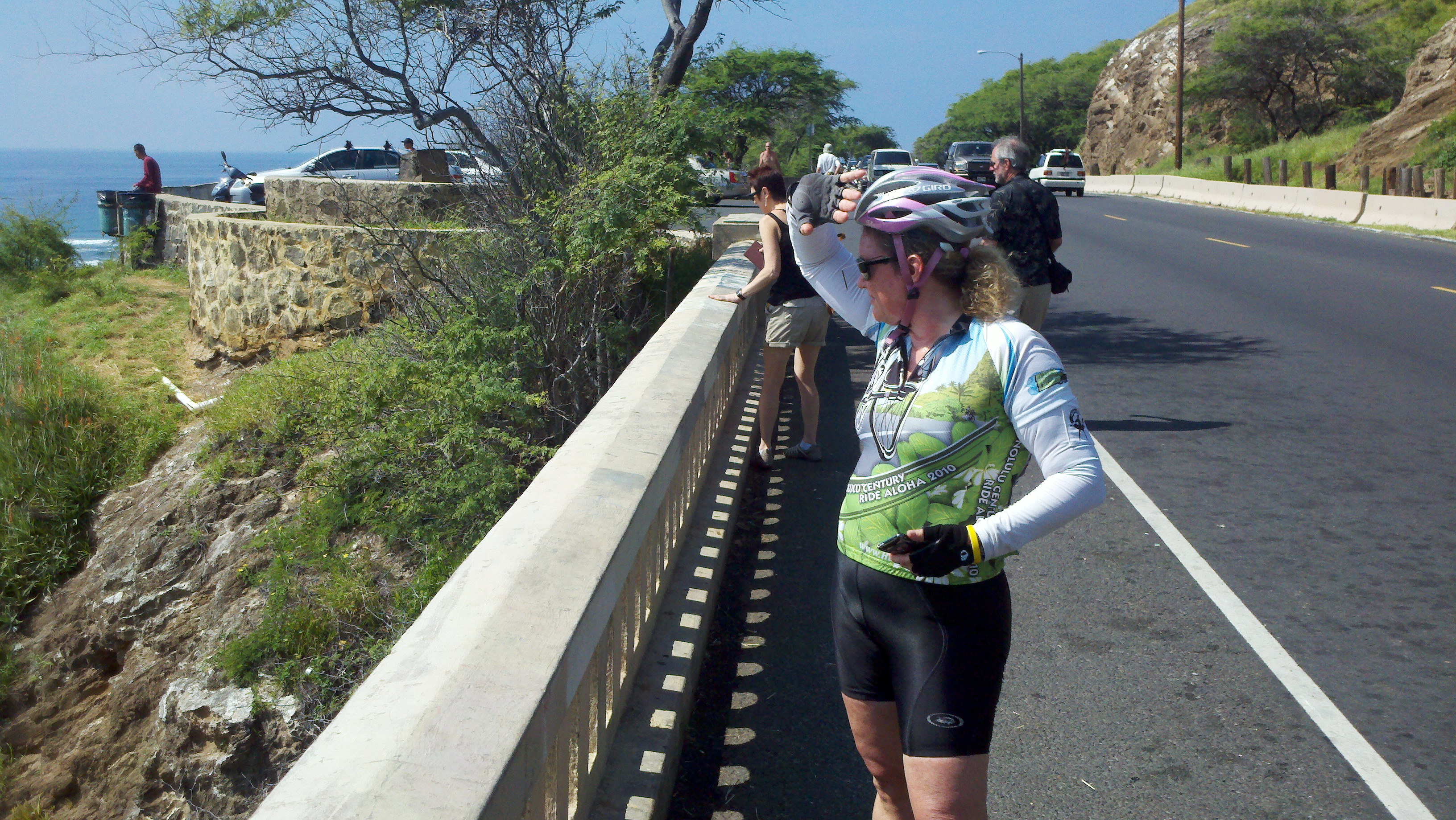 Because I’m still full of phlegm, we didn’t tackle any hills. Instead, we did the East Oahu valleys to Diamond Head and back. I passed a couple of guys.