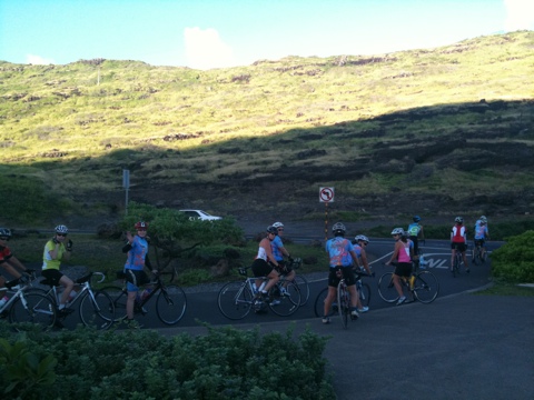 Here’s to all of you folks who ride bicycle in groups. I often ride alone or with John. I love seeing friends and waving hello. Heck, I love it when people I don’t know on bicycles give me a little nod or a wave! In fact, today I saw the Red Hot Ladies riding along Hawaii Kai Drive. They waved. I love those gals! They include me in their emails.
