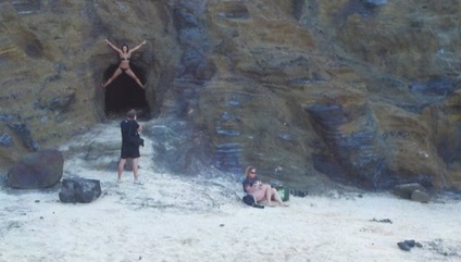 So while I swam around with our daughters in the water, there were various groupings of people taking pictures. When I got out of the water, I sat in my chair to take in the view. This one couple, and I’m not sure they were romantically linked, were all over the cove. She’d jump in her bikini, she’d scale the rocks, she’d roll around in the water, while the guy took her picture. I took a photo of them when they were over my shoulder. She was giving him a hard time about not getting exactly what she wanted. I was a little surprised at how abusive she was. Sounded like a couple to me.
