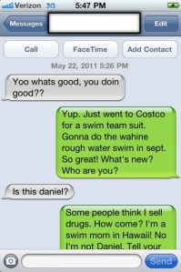 Paula: When I first got an iPhone I had the former number of a parent of a student at Waipahu High School. He wasn’t a good student, so after the third call from the VP, I said, “Tell him I said that he better start paying attention in school, otherwise I’m coming down there…and this isn’t his mother.” — never got a call again 🙂