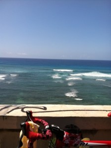 I guess you could say we did some rescuing of our girls this morning. I can’t disagree, but I won’t apologize. In these instances, when it’s possible our actions result in not only helping our daughters be more comfortable, but in making things easier for their hosts, too, then I’m there. I brought Charlotte home, had her take a refreshing shower, and then we went to see Sophie. When we got back home, Charlotte crashed, John prepped my bicycle and I went for a little 25-mile ride. Yes, so many thoughts, but it was exhilarating to be in the Oahu sunshine, riding my regular short route, with a few extra mini hills thrown in at the end for good measure. Today’s late start at 9:40 a.m. could not be helped.