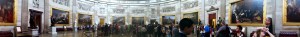 First stop, Nerdtopia, aka, The National Air and Space Museum. I only saw one Boy Scout, an adult. Last time I was there, the place was full of them. Kid1 and John took off to explore while Kid2 and I found solace in the museum’s art gallery. She even posed with her new drawing on the wall, and I could see her acknowledge her grand ambitions. Kinda fun.