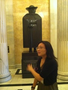 We were taken on a tour by staffers Elyse and Dan, and it was a better tour than anyone who was there with a little self-guided tour lanyard, or in big group, would have gotten. We got to see two representatives speak in the house chamber. I’m not real sure how much my daughters absorbed, but, hey, I got them in there! They enjoyed the subterranean mini wiki-like subway train that took us from the Senate buildings to the Capitol. The information about the paintings in the rotunda were the most interesting to us. We posed with many statues and enjoyed hearing the stories about the artwork and the building.
