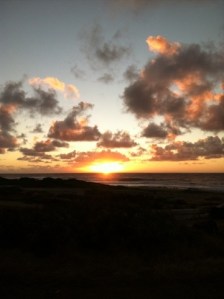 As I rolled out of Queen’s Gate on the road that cuts through Hawaii Kai Golf Course, I was treated to the sight I woke up early to see: sunrise. The first bright rays were shooting into the sky from behind Maui, or was it Molokai? I got through the light and pedaled to the dirt parking lot for the old Allen Davis Ranch. By the time I got my iPhone out for a pic, the sun had crested and here is the result.