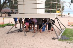 They could have. At 6 a.m. Raul led us all down the beach to the start by Lanikai Boat Ramp, a squall blew in sideways stinging rain that poked fun at us, gusty winds that mocked us in our nearly naked swim gear, and the choppy seas seemed eager to devour us.