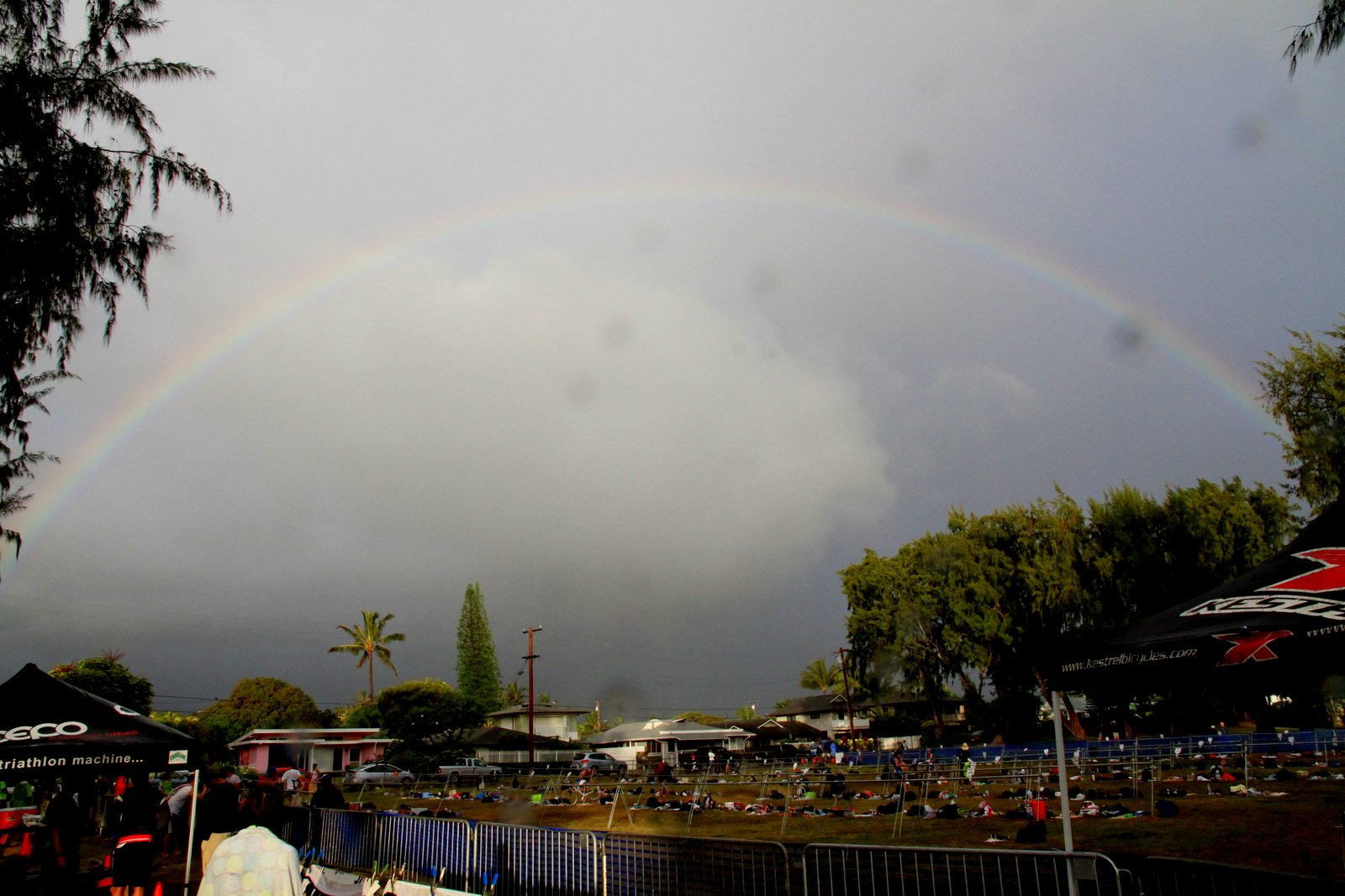 Rainbow. A rainbow appeared after I took off on my bicycle. The weather was dramatic: stormy, windy, rainy, and cool for the run.