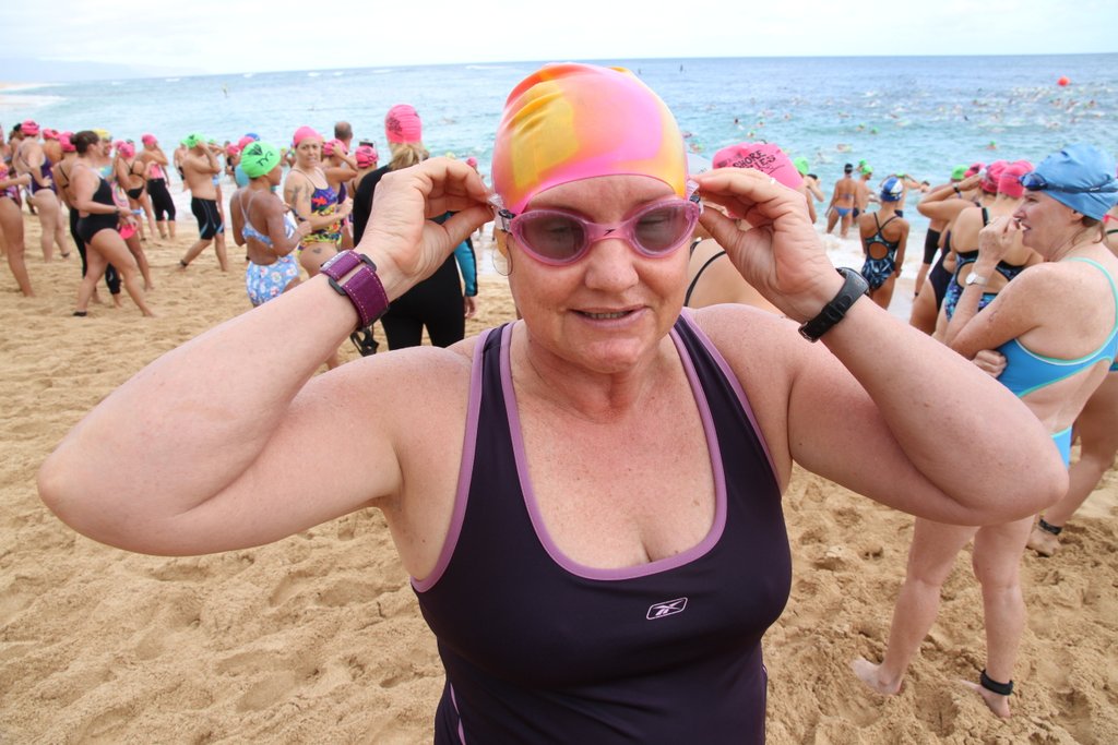 Getting ready. Look how calm I am! Getting ready for the Sunset to Pipeline mile swim. Look how calm I am!