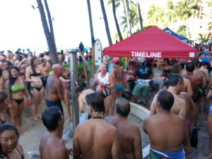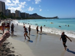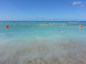 Yesterday I swam in the Duke Kahanamoku Ocean Mile Swim and finished with a time of 36:17:00. There were about 400 people competing, with the men launching 5 minutes before the women.
