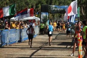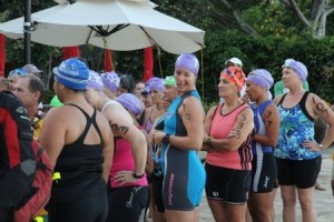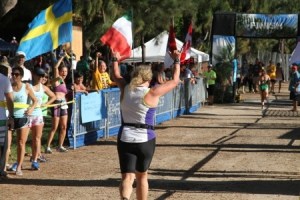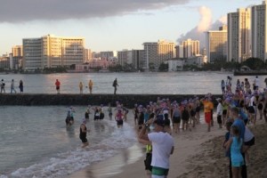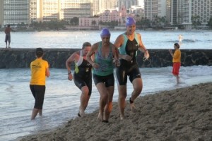 As much as I love to swim, racing in the open ocean within a school of other women flailing and kicking every which way drives me crazy. It is not like the North Shore Swim Series or even like the Waikiki Rough Water Swim. Triathlon ocean swimming is vicious, and we all want to get it over with. Thanks to my being in the North Shore Swim series, I’ve gotten better about exiting the ocean.