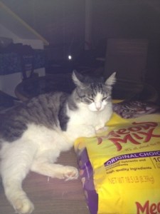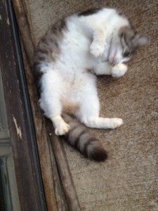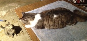 This cat is sweet. But last night when he chased my furson Comet, who looks little compared to him, I was kinda pissed about that. I mean, who beats up the host when you’re sleeping in the man space out in the garage? Bad manners. Kitty Girl is pretty miffed about the whole thing, too. She’s been across the street in a neighbor’s shrubs. Such a cranky girl.
