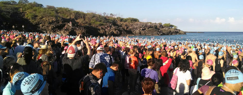 We didn’t have much time to shop for a new home or to make a land purchase, so we went straight to the Fairmont so I could check in to the Ironman 70.3 event. I needed to get my race packet, sign several releases, get my race chip, pack and leave my run bag, check into the hotel, attend a mandatory race briefing, pick up my bike, sweet talk the TriBike Transport guys to put the new tires on my wheels so I’d have fresh rubber on the road the next day, and get dressed to ride my bike to Hapuna Beach Park to set it up at the bike start. After that we went to Foodland up the street to pick up some sandwiches and bottles of water. I slept well until 3:30 a.m. and had coffee and breakfast with John. We met our friends Rick and Lori in the elevator and they graciously gave us a ride to the start, so we didn’t have to take the shuttle bus. That was so great!