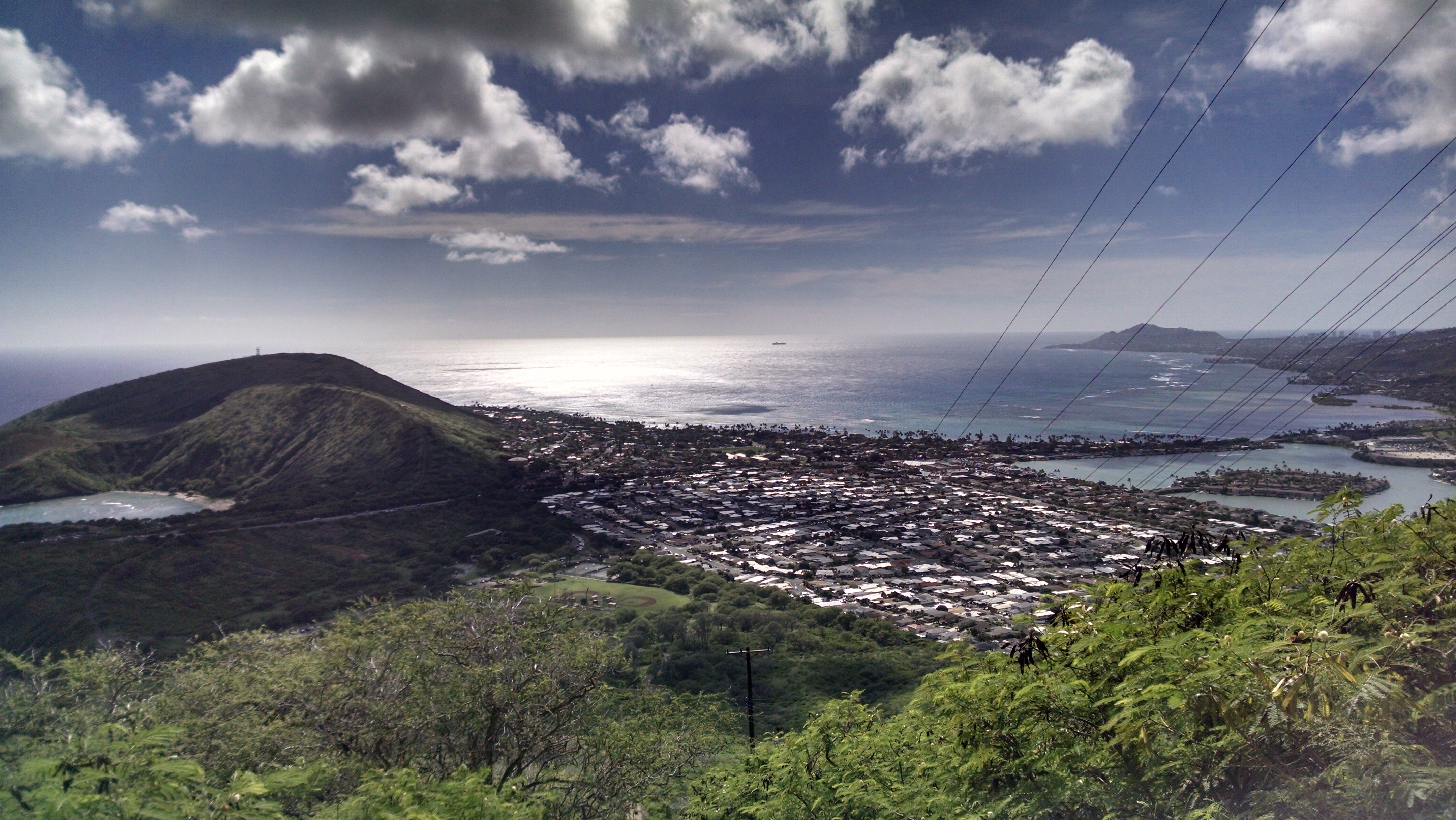 Under the blazing sun at 1 p.m. yesterday, I had the curiously strange idea to go up Koko Crater, which is practically in my backyard. It’s a big draw for (insane or fit or insanely fit) residents and tourists alike. It’s also a draw for those who want to go on a little hike. How hard can it be, they must ask themselves. I don’t know why anyone would do this hike more than once. We used to go up quite often, before it became a tourist destination, and we even took our daughters up there a few times. We’d watch the sunset, take in the view, and take lots of pictures.