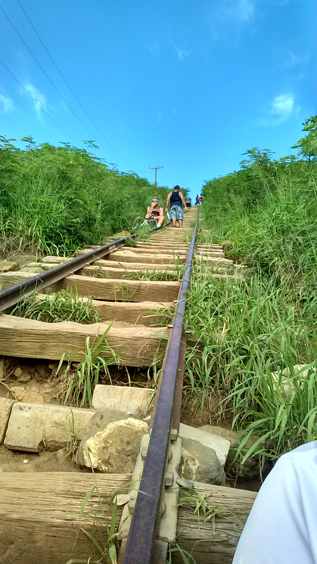 A week or a weekend doesn’t go by that we don’t hear the sirens wailing and the fire department’s helicopter flying to Koko Crater to make a rescue. Having done it one final last time, it doesn’t surprise me. It would be so easy to fall and twist an ankle or break a bone. For me, it was dizzyingly high and at one point on the way down, I didn’t measure the step as far down as it was and I nearly tumbled. And, although it feels like it takes forever to get to the top, it also feels like forever to get back down. I am so done with it.